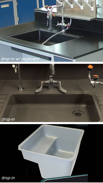 Drop-in epoxy resin sinks are the mainstay of the laboratory industry for schools, hospitals, water treatment plants, chemical and research environments. Easy to install, do not require sink supports, chemical and heat resistant. Epoxy resin is the most desired lab grade material used for sinks and when combined with Trespa TopLab Plus laboratory grade counter tops, the wet laboratory has an unbeatable combination of cost effectiveness and quality applications.