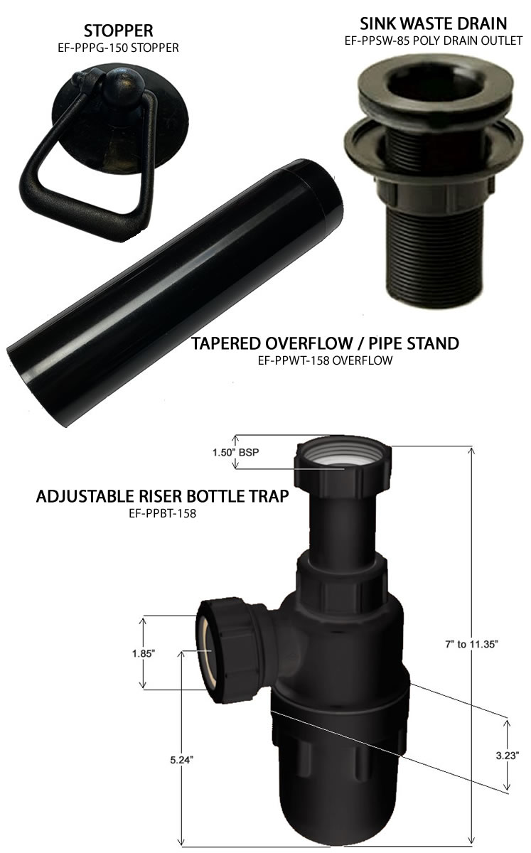 All Duratop Epoxy Resin sinks require accessory sets of the following: